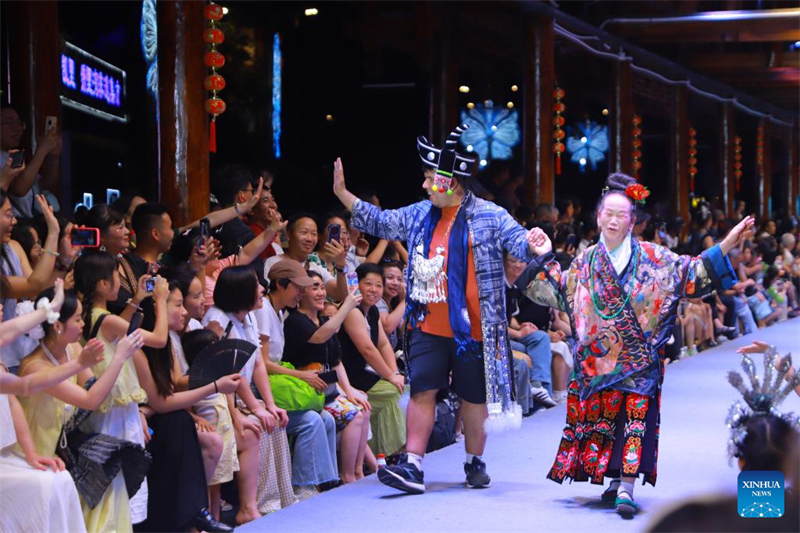 Eine internationale Jugendgruppe nimmt an der ?Village T“-Modenschau in Kaili, südwestchinesische Provinz Guizhou, teil, 5. Juli 2025. (Xinhua)