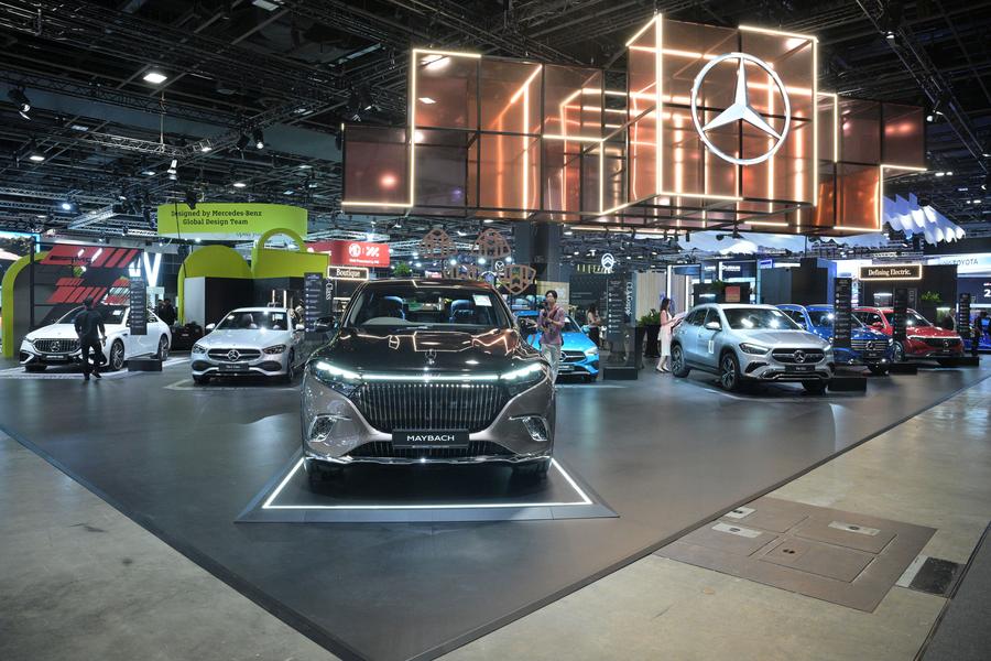 Dieses Foto zeigt den Stand des deutschen Automobilherstellers Mercedes-Benz auf der Singapore Motorshow, die am 9. Januar 2025 im Suntec Singapore Convention & Exhibition Centre in Singapur stattfand. (Xinhua/Then Chih Wey)