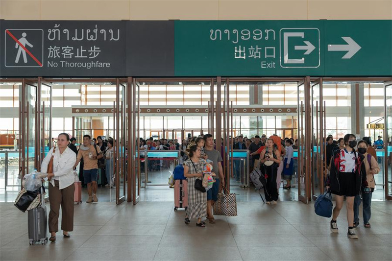 Passagiere verlassen am 2. Dezember 2024 den Bahnhof Vientiane der China-Laos-Bahn in Vientiane, Laos. (Kaikeo Saiyasane/Xinhua)