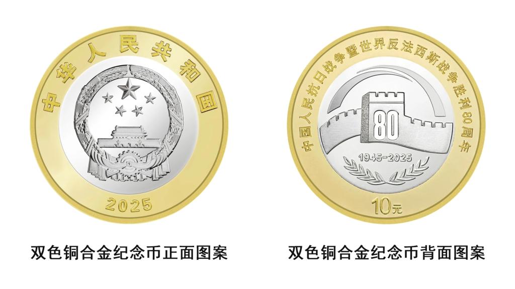 Die chinesische Zentralbank wird ab dem 3. September eine Reihe von Gedenkmünzen herausgeben, um den 80. Jahrestag des Sieges im Widerstandskrieg des chinesischen Volkes gegen die japanische Aggression und im weltweiten antifaschistischen Krieg zu gedenken. Dies gab die Bank am Donnerstag bekannt.